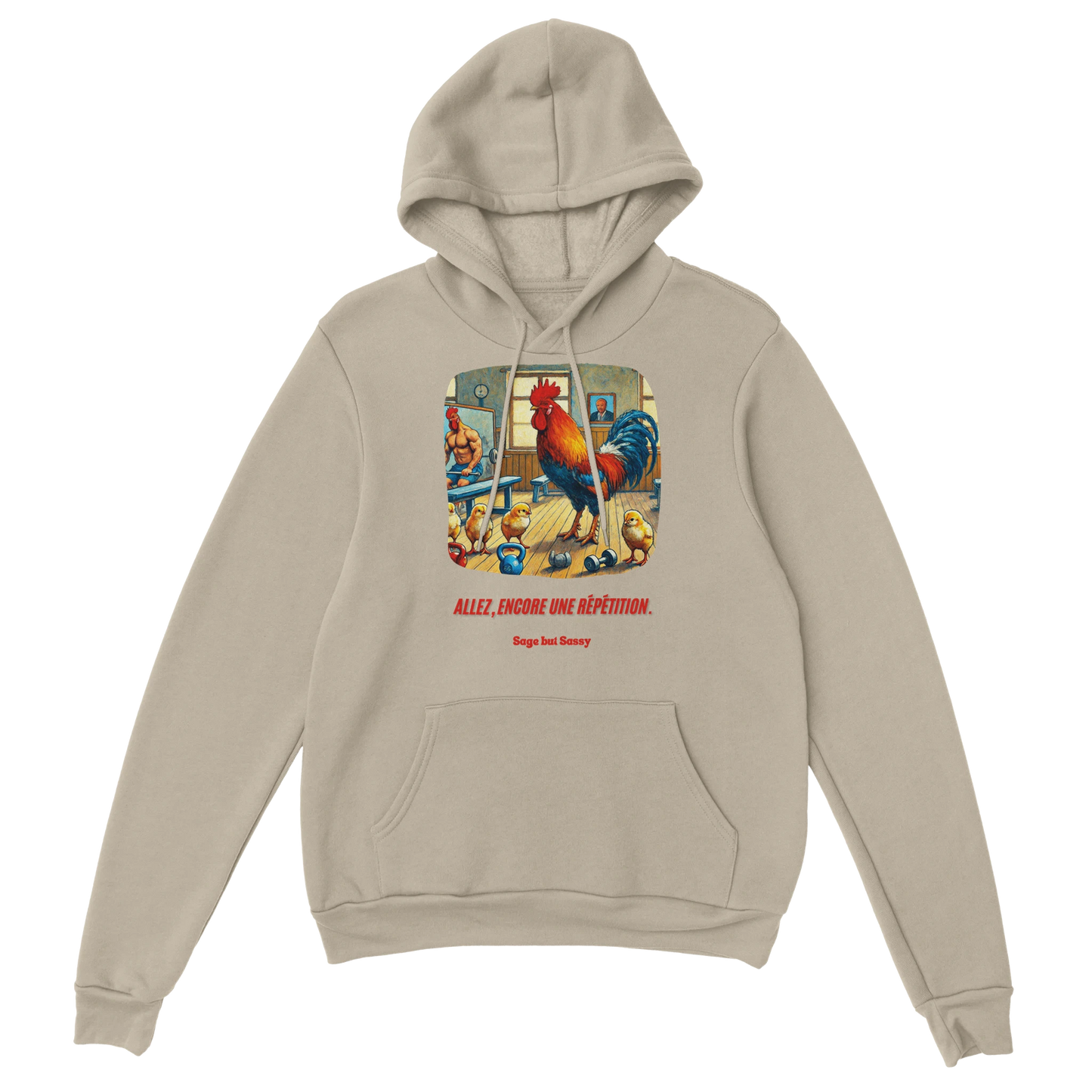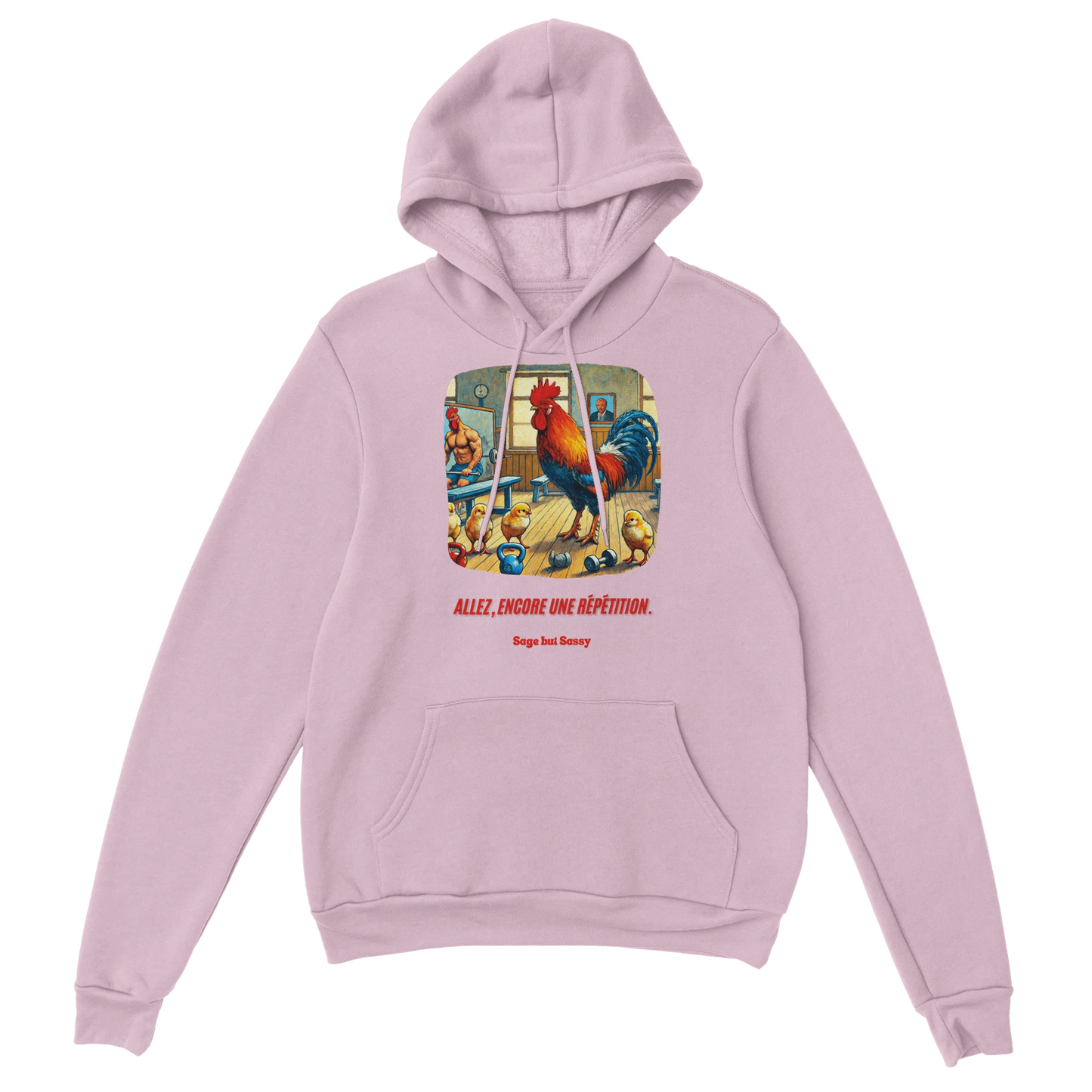 - Features a double-lined hood with matching drawstring.