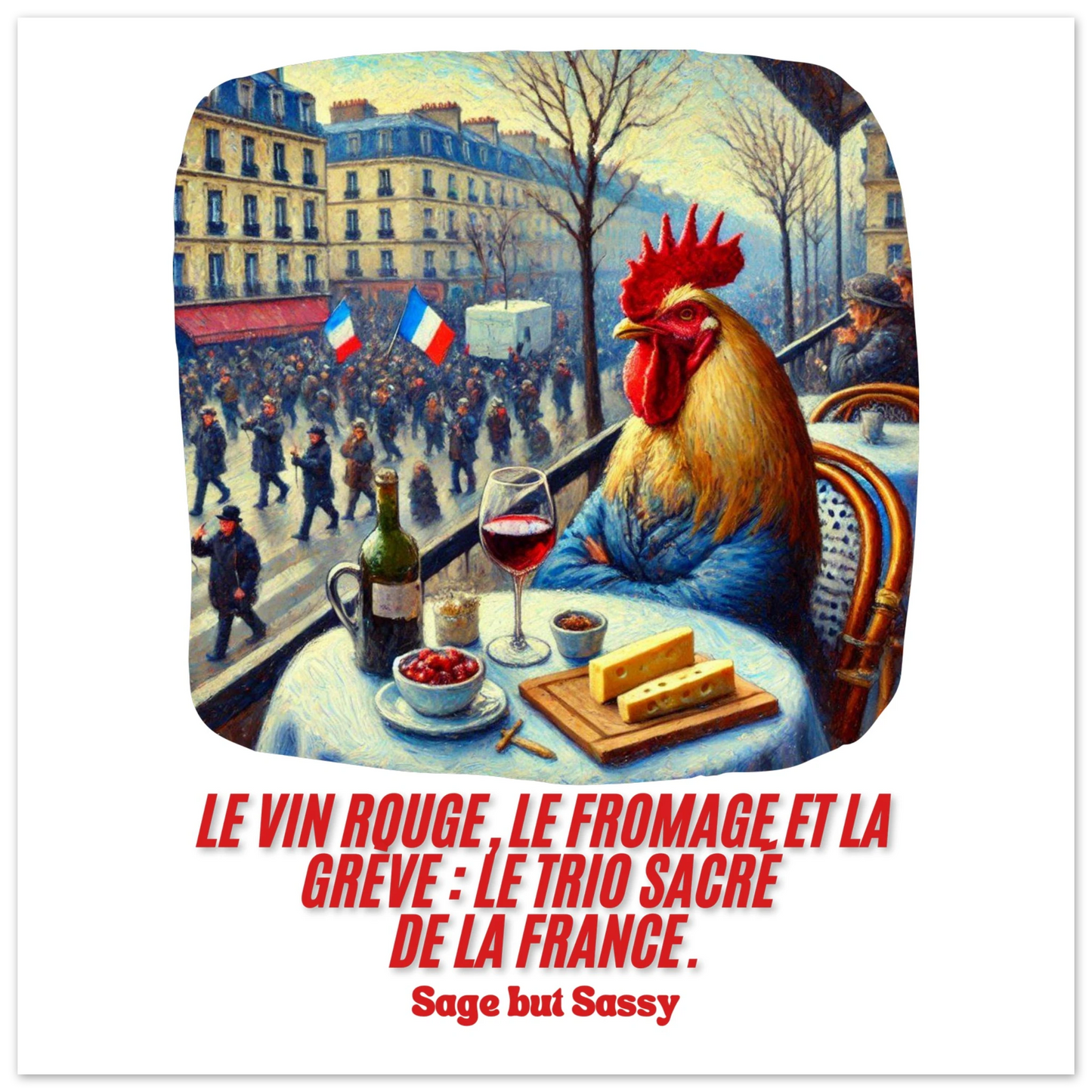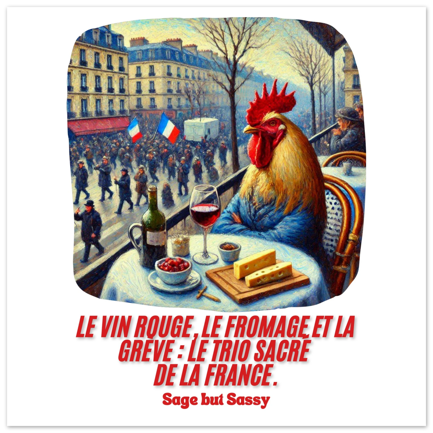 Le vin rouge, le fromage et la grève : le trio sacré de la France.