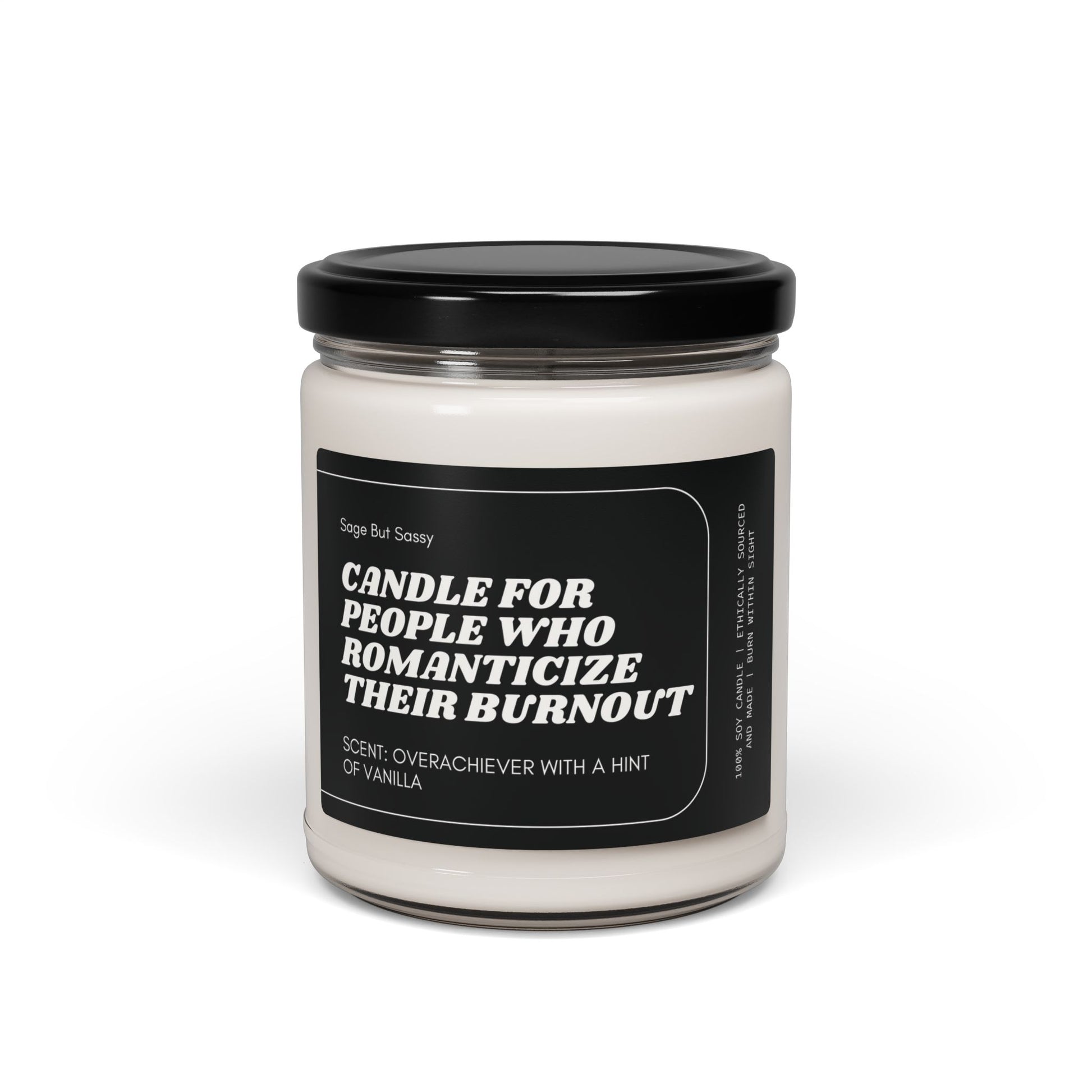 A scented candle perfect for gifting to those who are always running late. This candle gives off a cozy and inviting vibe, ideal for creating a relaxing atmosphere at home. Relevant for birthdays, holidays, housewarming gifts, and self-care occasions. Product features - Eco-friendly and non-toxic soy wax blend - Reusable glass vessel for decoration - Various scent options like Cinnamon Vanilla and Apple Harvest - Burning time of 50-60 hours - Compliant with ASTM safety standards Care instructions - Keep burning candle within sight. Keep away from children and pets. Never burn the candle near flammable items.